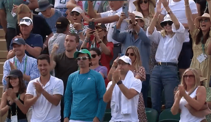 这场比赛的关注度并不高,但由于是这个比赛日最早开始的一场比赛,因此还是有相当多的球迷进场观战。作为19号种子,德米纳尔在前两盘打得顺风顺水,2-0领先。加林更擅长的是红土赛场,但这也培养了他坚韧的比赛风格。第三盘,德米纳尔在第11局逼出破发点,只要这局破发,将带出发球胜赛局。但加林从此刻开始,绝地反击。