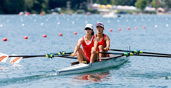 赛艇路线一共2000米,每500米一个计时点,邹佳琪在船头,邱秀萍在船尾。第一阶段中国队暂时领先,500米之后领先第二名伊朗队接近2秒,成绩是1秒42秒14。