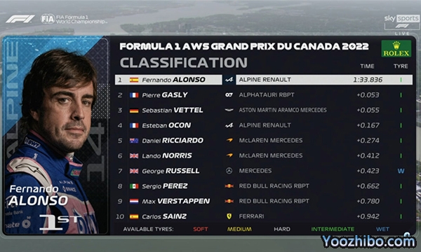 24直播网讯 北京时间6月18日,2022年F1加拿大大奖赛三练结束,整个三练在大雨中进行,最终阿尔派车队名将阿隆索以1:33.836的成绩排在第一!加斯利第二,维特尔第三!法拉利车队的勒克莱尔由于超额更换动力单元部件正赛将从队尾起步,他在三练中没有做出有效成绩。中国车手周冠宇表现出色,排在了第12名。