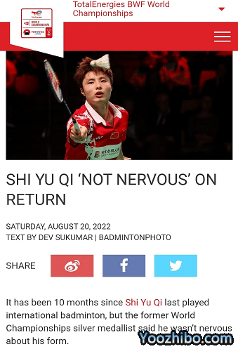 没有办法参赛,然后第一项比赛就是世锦赛这样的大赛,对于石宇奇来说也一定是会有些影响的。针对这点,在接受采访的时候,石宇奇表示自己平时都有认真努力的训练,队内和团体也都给予了很大的帮助。