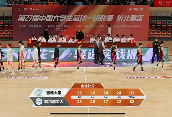 24直播网讯3月16日 CUBAL东北赛区1/8决赛,吉林大学对阵哈尔滨工业大学。小组赛吉林大学3胜1负,哈尔滨工业大学2胜2负。比赛开始,周鑫抢断后助攻吴孟霖反击上篮先拿2分,罗奕桐三分回应也为吉林大学开局。罗奕桐和段世镭接连取分帮助吉林大学建立主动权,周鑫、辛泽林和李泽诚接连3记三分止血并咬住比分,随后辛泽林外线还能命中,首节哈工大23-22领先吉林大学1分。次节上篮,林晓峰和刘滨畅接连三分命中,吉林大学7-0直接反超比分。暂停过后,高天艺造杀伤两罚全中止血,周鑫里突外投也能回应,双方展开拉锯战。吴孟霖连续扔进三分追平比分,刘滨畅三分回应,最后两分钟哈工大一分未得,段世镭再突破造杀伤,半场吉林大学48-43反超哈工大5分。易边再战,罗奕桐抢断反击追身三分拉开双位数领先,打了2分钟高天艺三分紧急止血,双方再次展开拉锯战。江龙三分开和后,双方命中率下降连续打铁,罗奕桐接王鹏助攻打停哈工大。周靖然和高天艺继续通过三分追分,林晓峰里突外投回应5分,三节吉林大学68-60依然领先哈工大8分。末节决战,刘滨畅和林晓峰外线连续发炮再次拉开双位数领先,辛泽林强打2+1止血,周鑫造杀伤再次追至个位数分差。暂停回来,周鑫反击扣篮再追2分,但无奈哈工大连续失误,罗奕桐接连三分砍下8分迅速回应,吉林大学拉开17分领先,随后哈工大无力回天,最终吉林大学92-82力克哈工大,晋级8强。