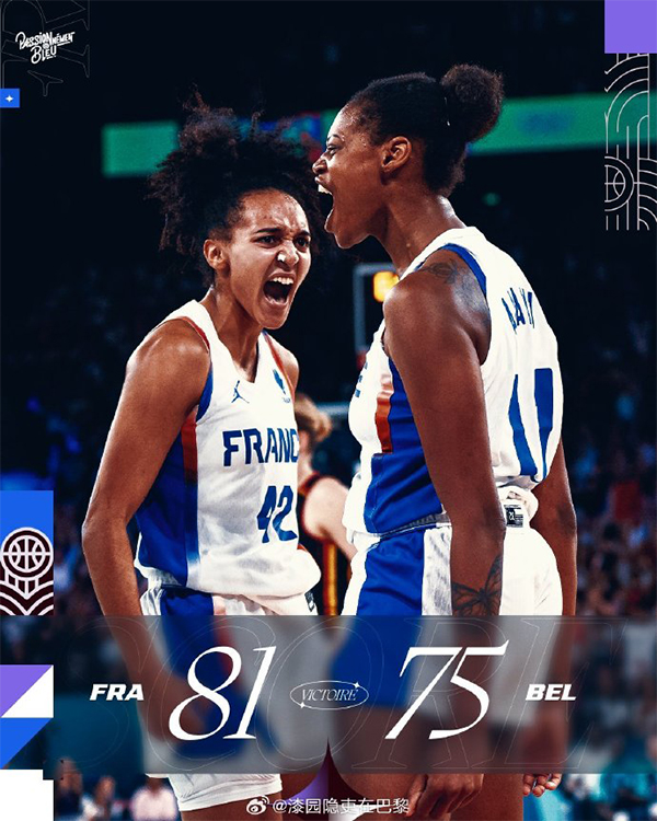 24直播网讯 08月10日讯 巴黎奥运女篮半决赛,法国女篮迎战比利时女篮。首节比赛,双方打得难分难解,比利时首节结束17-14领先,次节回来两队你来我往,半场结束比利时36-31领先法国女篮5分。半场回来风云突变,比利时开场打出10-0,一举拉开分差,法国女篮立刻回了一个10-0,三节结束,法国女篮48-51只落后3分。第四节比赛,法国女篮开始反击,扭转了分差,最后时刻一度领先6分,比利时造3罚全中迫近到3分分差,再命中三分直接追平比分。最后8.2秒,法国最后一攻失利,双方进入加时。加时赛,法国队先声夺人,但比利时依旧顽强追分,但法国队最终把握住了微弱的领先,拿到胜利,杀入奥运女篮决赛。