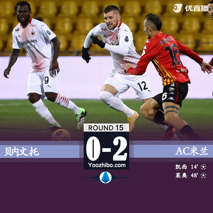 24直播网1月4日讯 北京时间1月4日星期一01:00,意甲第15轮贝内文托主场迎战AC米兰。上半场,雷比奇造点,凯西主罚命中,VAR介入判罚直红罚下托纳利,贝内文托半场0-1AC米兰。下半场,莱奥机敏吊射破门,卡普拉里造点主罚偏出,凯西推射中柱。最终,十人AC米兰客场2-0战胜贝内文托,红黑军团继续保持本赛季联赛不败,同时重返意甲榜首。AC米兰也实现了跨赛季27场不败的战绩。