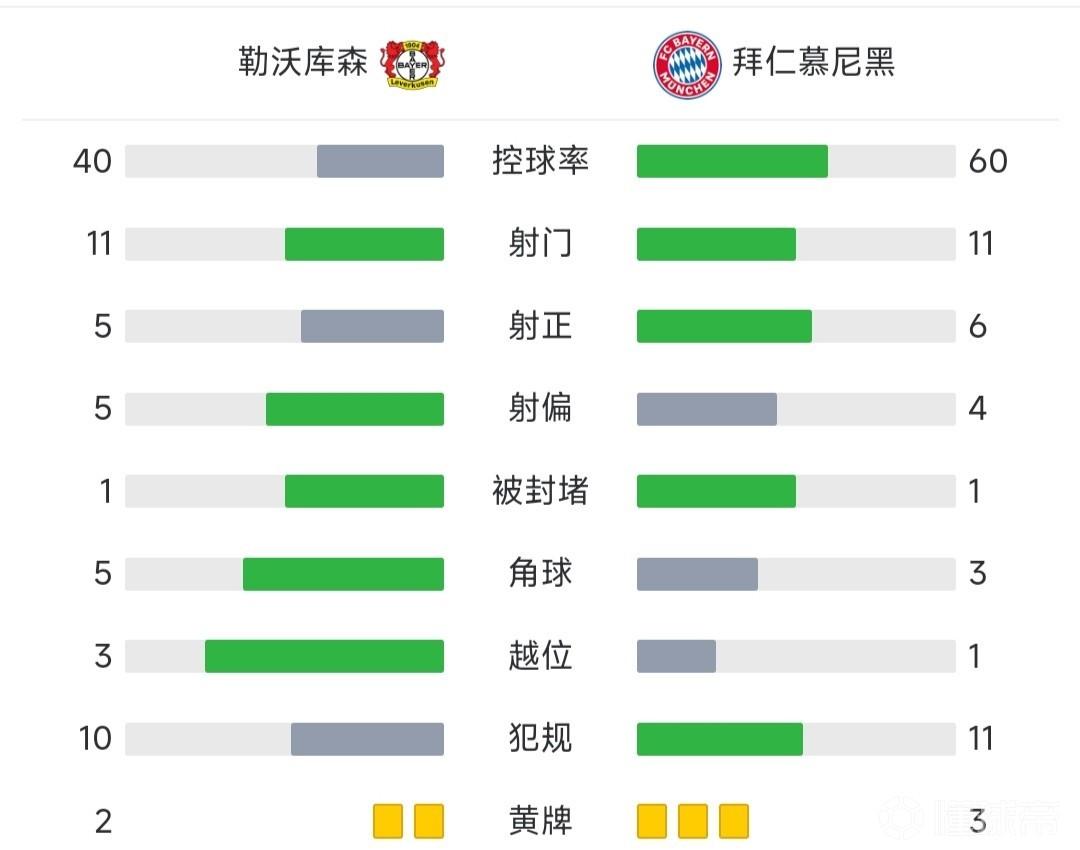 最终拜仁1-2被勒沃库森逆转,未能超过本轮获胜的多特蒙德,排名次席。