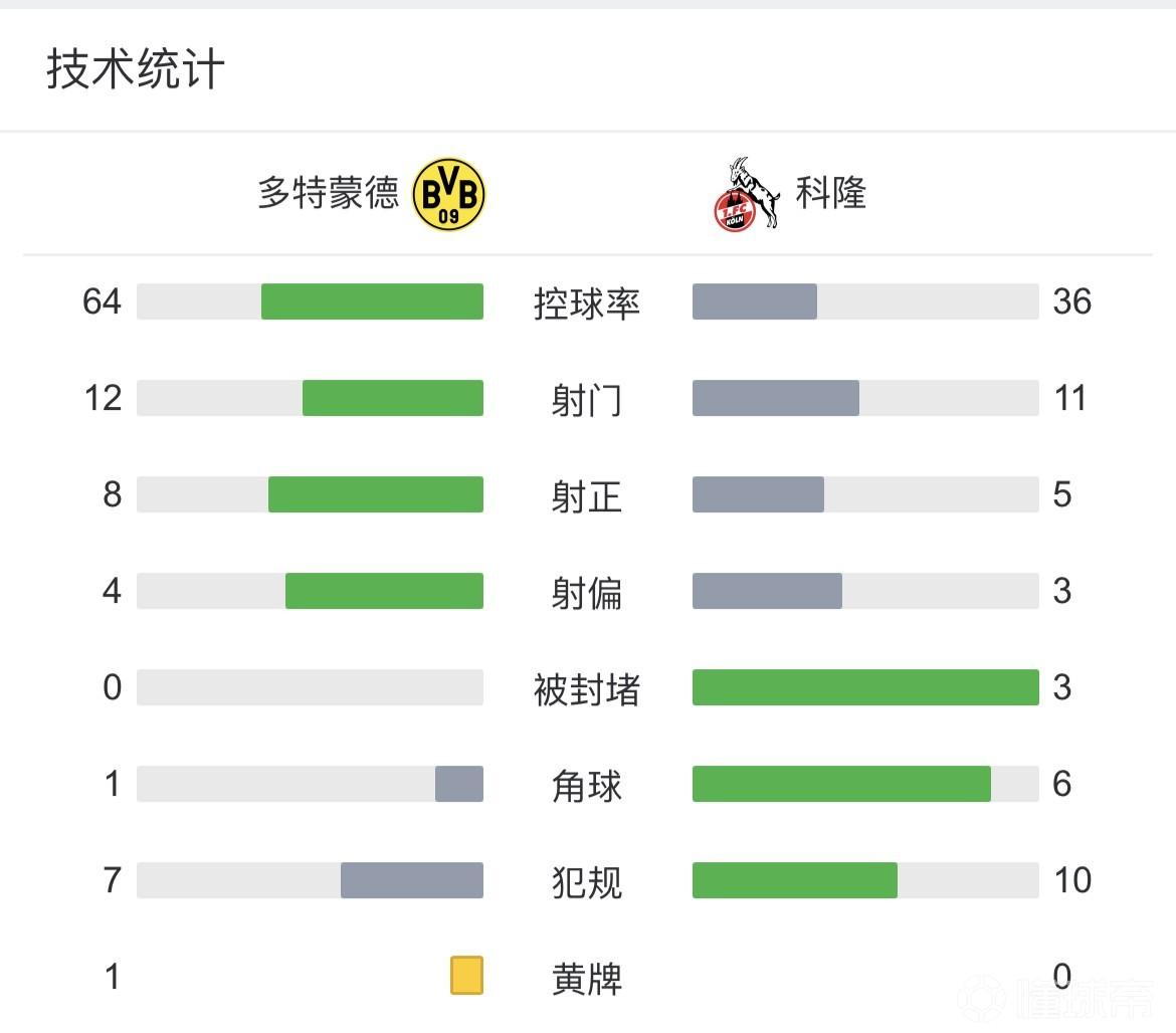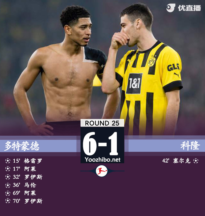 最终多特蒙德主场6-1大胜科隆。