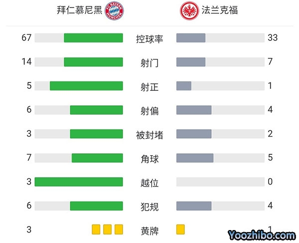 全场比赛结束,最终拜仁1-1法兰克福遭遇联赛三连平。