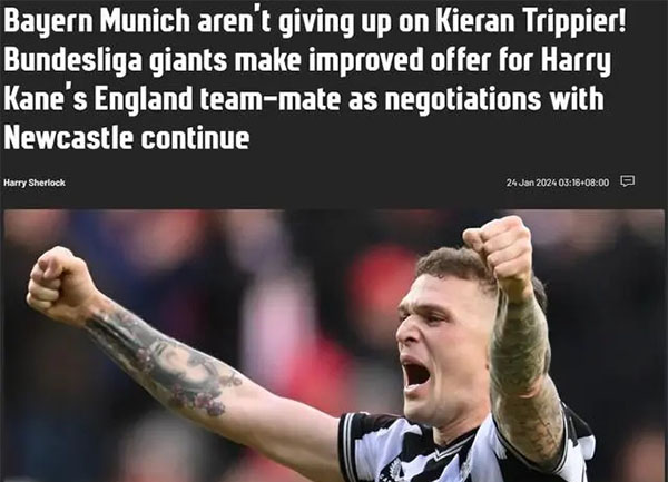 报道称,特里皮尔与拜仁已经就转会达成了协议,但如果纽卡斯尔不愿意出售,即使他已经与拜仁谈妥了条件,他也没有什么办法强行转会,他很可能被迫等到夏天。