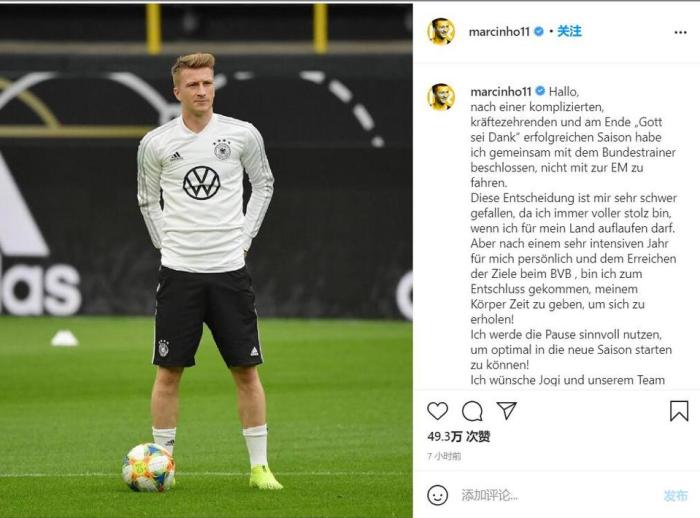 来源:24直播网05-19 10:4624直播网讯 北京时间5月19日,罗伊斯在个人社交媒体上宣布,自己不会参加今年夏天的欧洲杯。