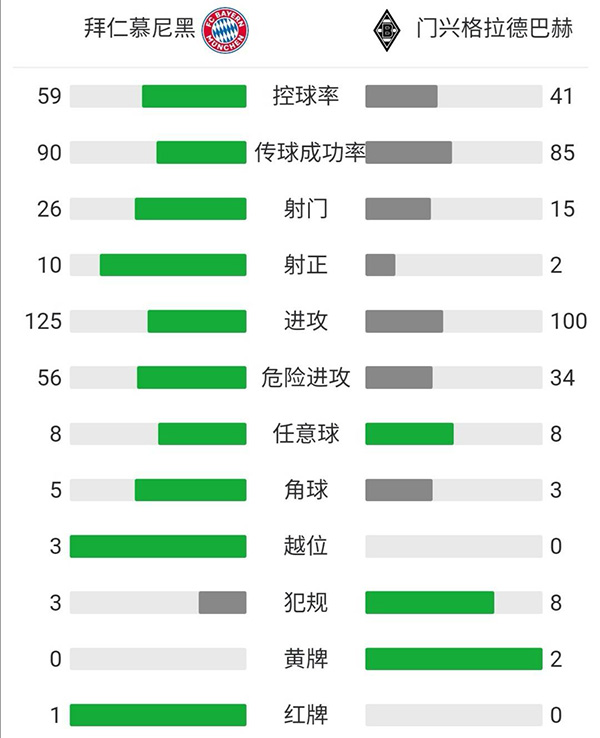 第23分钟,科曼右路依靠速度推进禁区晃过防守球员挑传,穆西亚拉停球横敲,跟进的穆勒推射,球碰到扎卡里亚出现折射破门,拜仁2-0门兴!