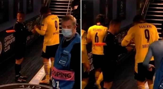 本场比赛,哈兰德为罗伊斯送出一个助攻,赛后,边裁在球员通道内拦住这位挪威射手,并向他索要签名,而哈兰德也没有拒绝,满足了边裁的请求。