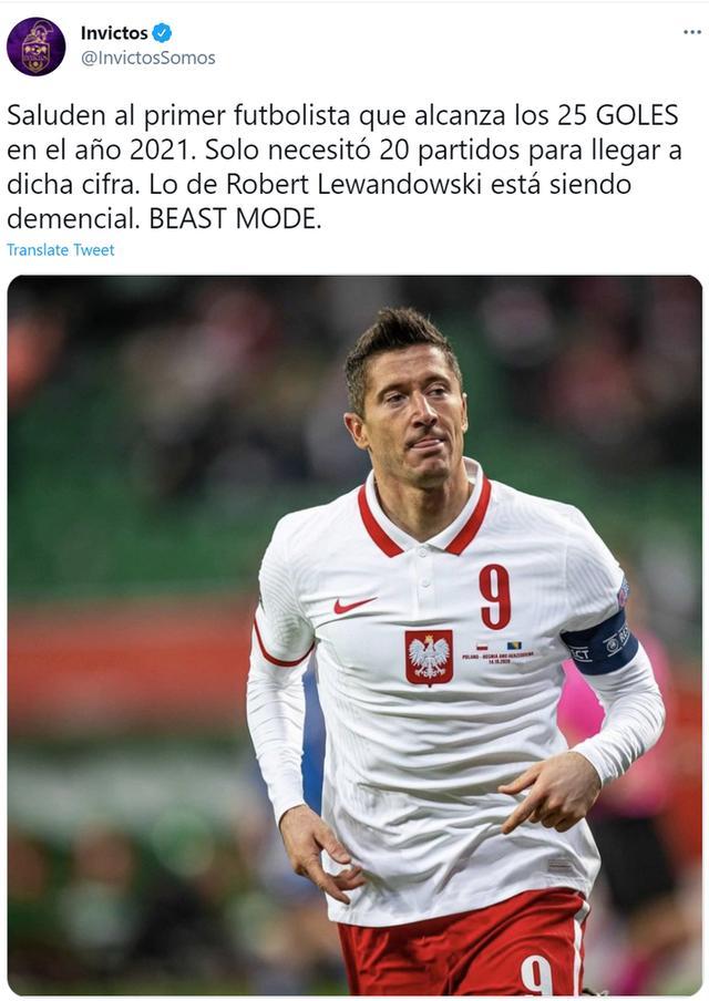 统计数据表明,莱万现在成为了2021年首位打进了25球的球员(俱乐部+国家队),而他只用了20场比赛就达成这一数字。