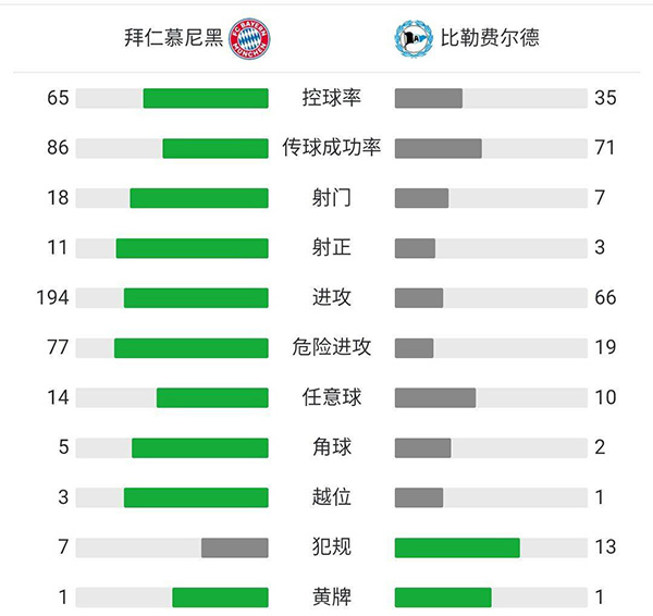 全场比赛结束,拜仁3-3战平比勒菲尔德,联赛五连胜被终结。