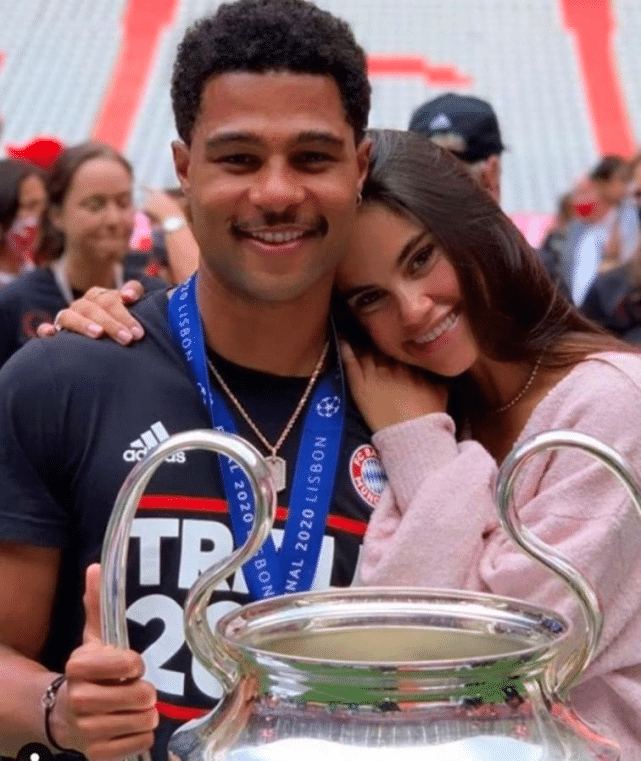 格纳布里的女友桑德拉是一位来自瑞士苏黎世,拥有埃塞俄比亚血统的职业模特。她与格纳布里是在去年3月正式确定了恋爱关系。而处于热恋期的两人曾经十分甜蜜,常常在个人社交账号上晒出恩爱合影。尤其是去年欧冠决赛,拜仁夺冠后,格纳布里还分享了两人与大耳朵杯合影的经典照片。