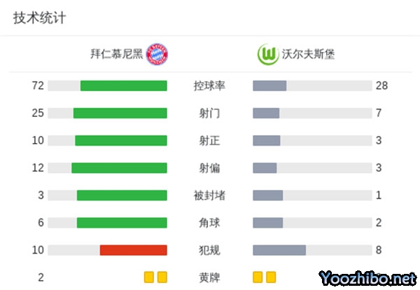 第20分钟,拜仁取得领先,金玟哉中线附近抢断后交给基米希,后者送出斜传,格雷茨卡带球至禁区前沿远射破门,拜仁1-0领先狼堡。