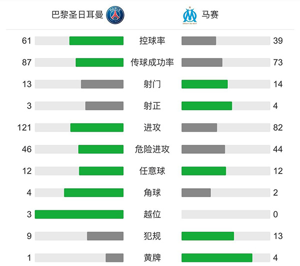 全场比赛结束,巴黎2-1战胜马赛,连续八年夺得法国超级杯。