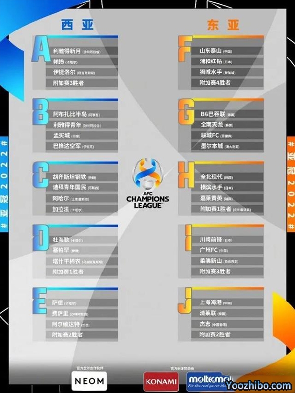 24直播网讯北京时间01月17日 2022赛季亚冠和亚足联杯的分组抽签仪式在亚足联总部马来西亚吉隆坡举行,具体结果如下: