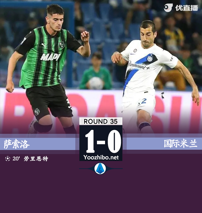 24直播网讯:北京时间5月5日2:45,意甲第35轮,国米客战萨索洛。上半场,劳里恩特帮助萨索洛取得领先;劳塔罗进球越位无效。下半场,双方均无建树。最终,国米0-1不敌萨索洛,本赛季遭遇萨索洛双杀。同时联赛28轮不败终结。