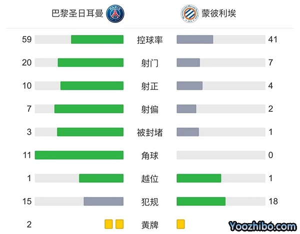 全场比赛结束,巴黎圣日耳曼主场5-2战胜蒙彼利埃。