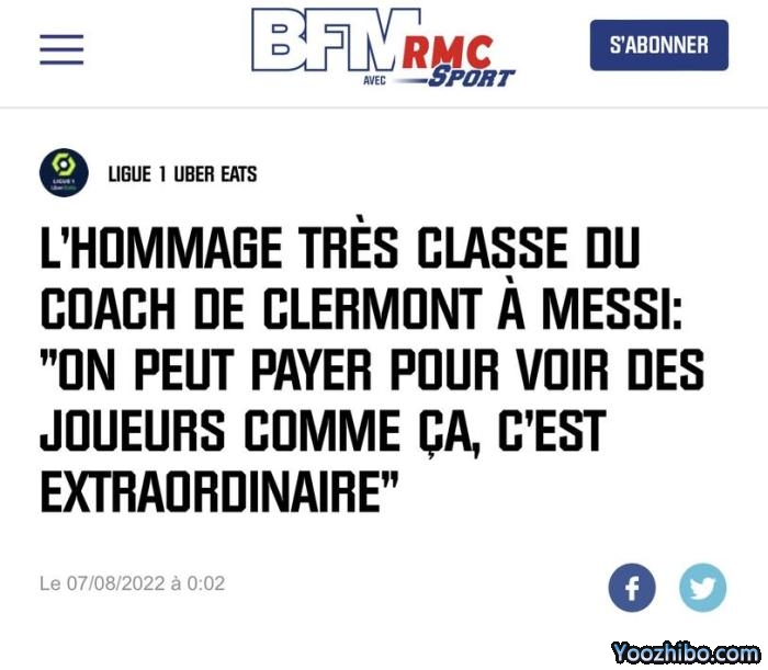 克莱蒙主帅盛赞梅西:我愿意花钱来看