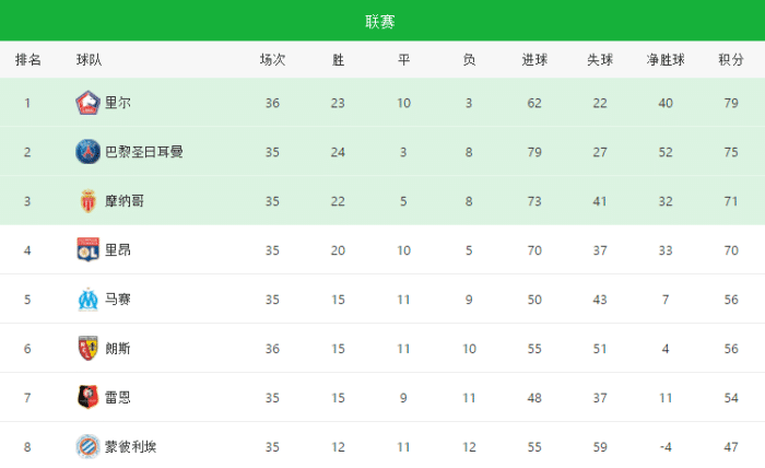 来源:24直播网05-08 11:0524直播网讯 本赛季的法甲格局被里尔搅翻,不同于前几年国内冠军都被大巴黎大包大揽,今年的联赛里尔异军突起,他们目前打了36场比赛,取得了23胜10平3负,积79分,还剩下2轮的情况下领先大巴黎4分,当然大巴黎少赛一场。如果接下来里尔在还剩下2轮的情况下击败圣埃蒂安和昂热这两支无欲无求的球队,他们就将力压大巴黎,时隔10年再度捧起联赛冠军奖杯。
