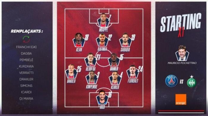 24直播网讯04月18日星期日19:00,法甲第33轮巴黎圣日耳曼主场迎战圣埃蒂安,目前双方已经公布了本场比赛的首发阵容。