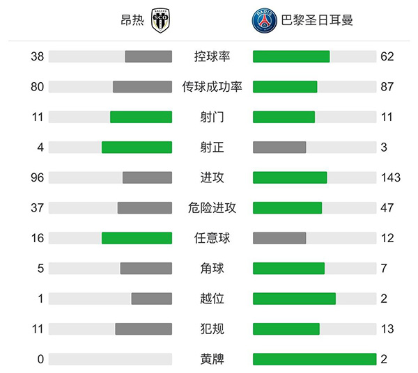 最终全场比赛结束,巴黎圣日耳曼客场1-0战胜昂热。