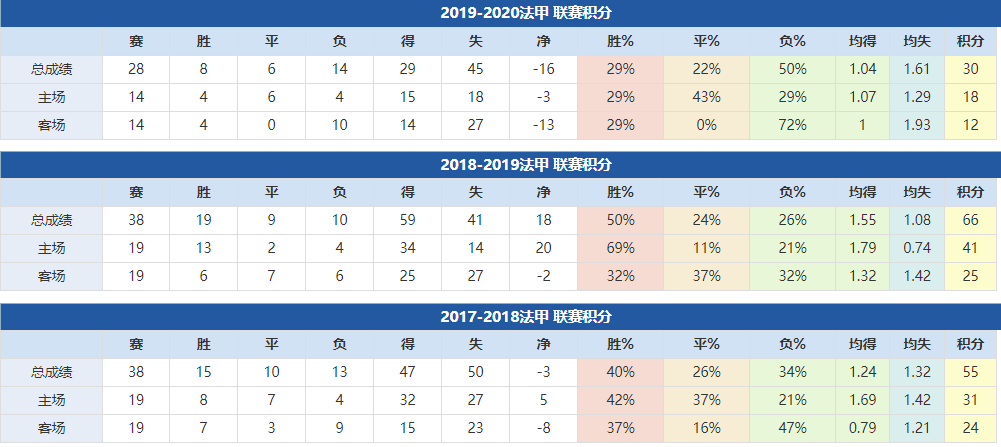 圣埃蒂安近年成绩: