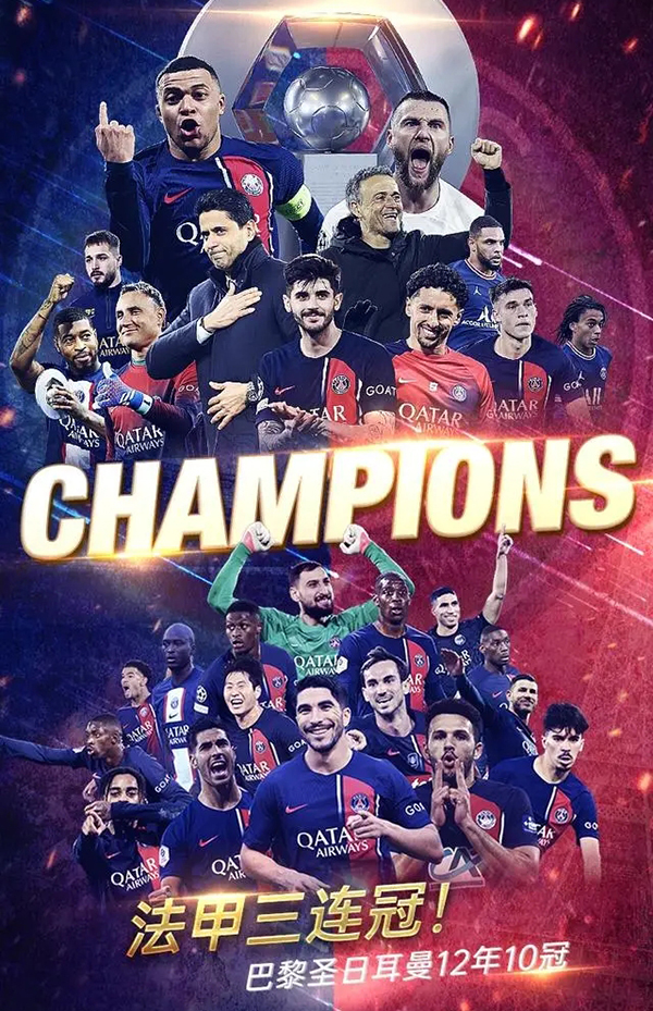 巴黎在法甲达成了三连冠成绩,近12年更是拿下了10个法甲冠军,是法甲历史夺冠最多的球队。