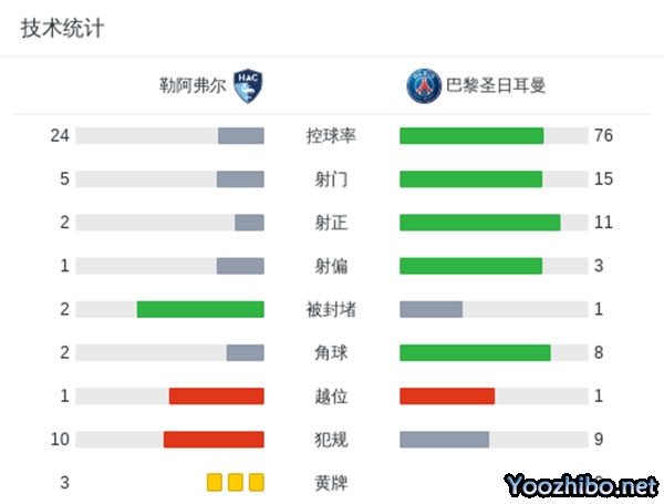 巴黎五分钟3球4-1勒阿弗尔迎开门红 内维斯两助攻