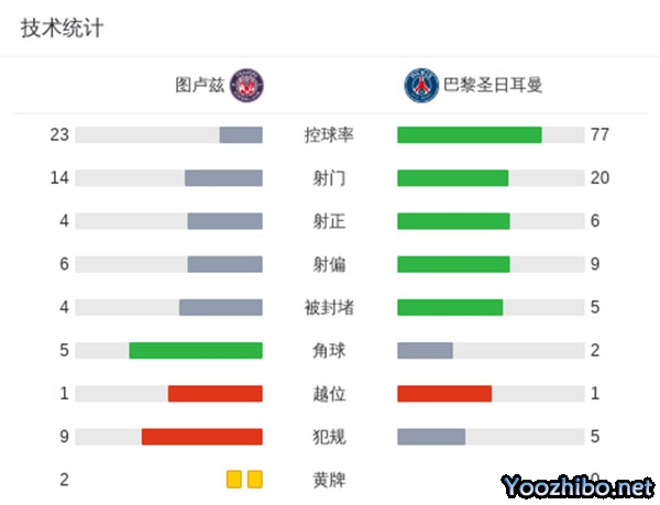 全场比赛结束,巴黎圣日耳曼1-0图卢兹!