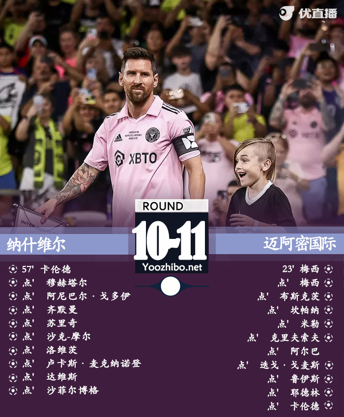 迈阿密国际首发:1-卡伦德、2-耶德林、27-克里夫索夫、31-米勒、18-阿尔巴、3-阿罗约(81' 13-乌略亚)、5-布斯克茨、30-克雷马斯基(69' 8-戈麦斯)、16-泰勒(81' 41-大卫-路易斯)、17-马丁内斯(69' 9-坎帕纳)、10-梅西