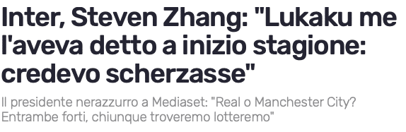 谈及主帅小因扎吉的去留,张康阳表示:“他会继续在国米执教很多个赛季,他是特别的,不管你是赢是输他在任何情况下都能保持冷静,这是一种特殊的品质。而且他是唯一一个从未向我要过球员的人。”