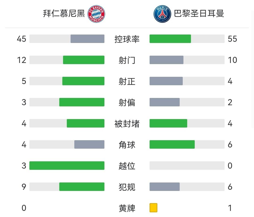 最终拜仁主场2-0战胜巴黎,总比分拜仁3-0淘汰巴黎晋级八强。