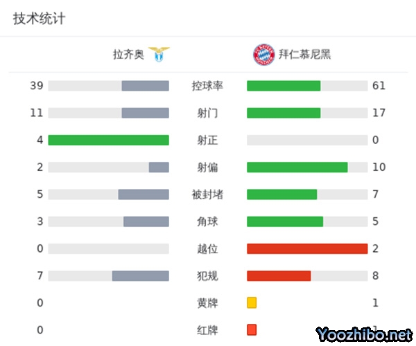 拜仁0-1拉齐奥 于帕吃红点套餐拜仁全场0射正