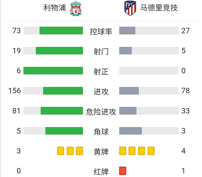 来源:24直播网11-04 10:50 24直播网讯:北京时间11月4日04:00,欧冠小组赛B组第4轮迎来一场焦点大战,利物浦坐镇主场迎战马德里竞技。上半场,亚历山大-阿诺德分别助攻若塔和马内破门,随后费利佩被直红罚下。下半场,若塔与苏亚雷斯先后进球被吹,替补登场的菲尔米诺伤退,马竞全场零射正。最终,利物浦主场2-0击败十人马竞实现双杀,四战全胜以小组头名提前出线。