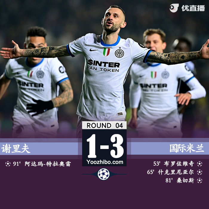 全场比赛结束,国际米兰客场3-1战胜谢里夫。