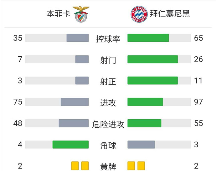 最终,本菲卡0-4不敌拜仁慕尼黑。