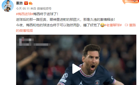 梅西进球之后也是疯狂庆祝,知名足球人董路表示:“梅西终于进球了!进球后的那一路狂奔,眼神里迸射的那团火,那是久违的激情释放!今夜,梅西和他的球迷也终于可以驰然而卧,睡了好觉了”