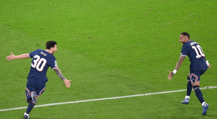 这场比赛梅西打进了自己在大巴黎的处子球,当时梅西持球从右边路发动反击,在曼城的后防线球员没有全部回防到位的情况下,梅西带走走向中路,姆巴佩进行跑位。姆巴佩接到梅西的传球之后没有犹豫,直接一做,给梅西提供了射门的机会,梅西也直接甩开了防守球员,射门得分,因为射门的动作非常隐蔽,所以对手曼城的门将都没有太多的反应,连扑救的动作都没有做出来。