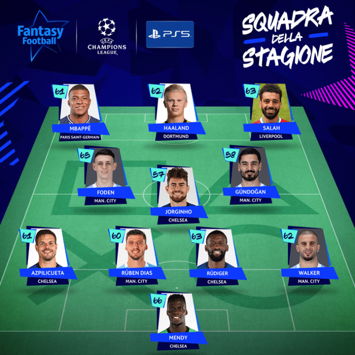 欧冠赛季最佳阵容: 姆巴佩、萨拉赫、哈兰德三叉戟
