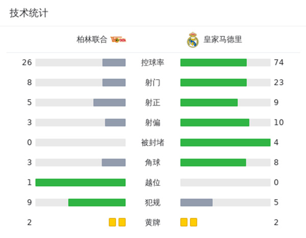 柏林联合首发:1-容诺夫、3-耶克尔(75' 27-贝克)、4-迪奥戈-莱特、6-戈森斯(75' 20-莱多尼)、18-尤拉诺维奇(82' 28-特里梅尔)、26-鲁西永、31-克诺赫、8-拉尼-赫迪拉(75' 33-卡拉尔)、19-哈贝勒、10-弗兰德(82' 7-阿隆森)、17-贝伦斯
