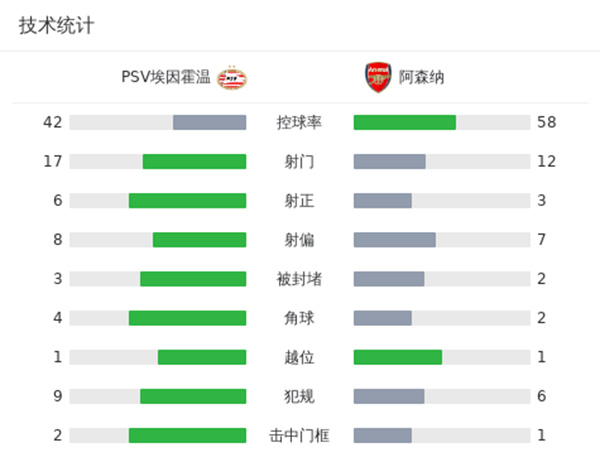 阿森纳1-1埃因霍温 恩凯提亚破门埃尔内尼伤退+中柱