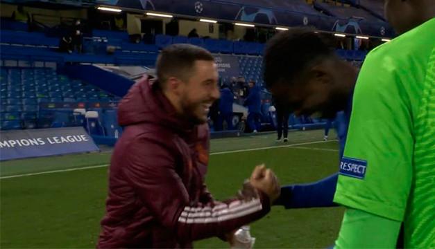 球场上表现不佳也就算了,毕竟阿扎尔才伤愈不久,可是赛后让皇马球迷愤怒的是,比利时人竟然还笑开了花。在终场哨响后,阿扎尔与切尔西球员门迪、祖马开心寒暄,甚至还露出了大白牙。