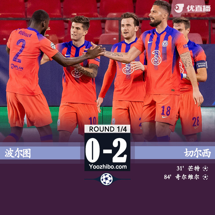 切尔西2-0波尔图 芒特灵巧转身破门奇尔维尔建功