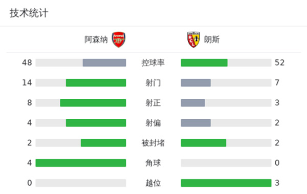 第13分钟,朗斯头球解围不远,热苏斯争抢到,哈弗茨赶在门将之前将球捅进球门!阿森纳1-0领先朗斯↓