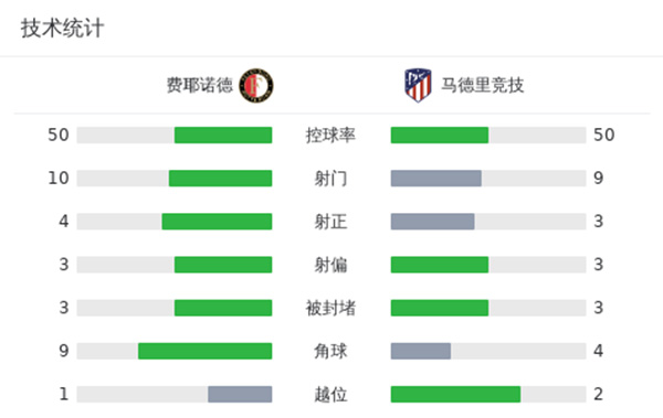 马竞3-1费耶诺德 略伦特造乌龙埃尔莫索破门