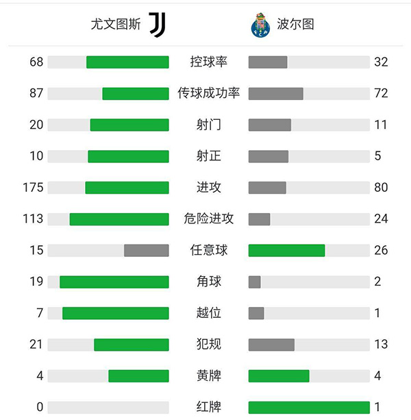 全场比赛结束,尤文3-2十人波尔图,总比分4-4因为客场进球劣势出局,斑马军团连续2年止步欧冠16强。