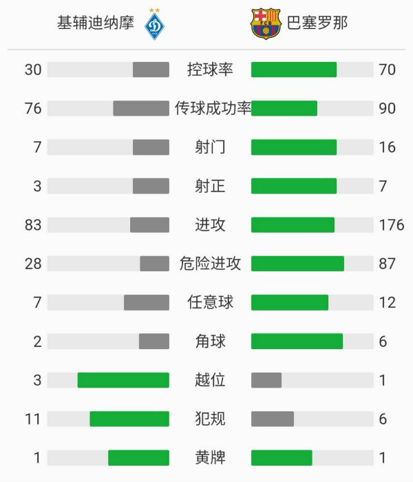 第51分钟,佩德里斜塞,布莱斯维特将球领入禁区内,德斯特插上推射远角得手,基辅迪纳摩0-1巴塞罗那!
