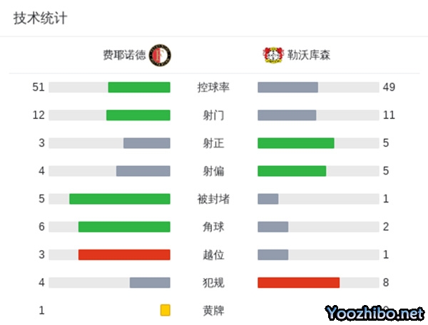 第4分钟,泽罗基中场失误被断维尔茨中路推进到弧顶抽射破门,费耶诺德0-1勒沃库森。