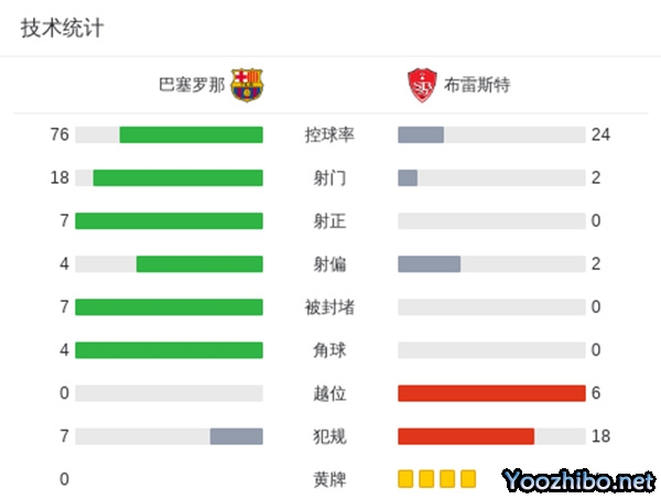 巴萨3-0布雷斯特欧冠四连胜 莱万双响+欧冠百球奥尔莫破门
